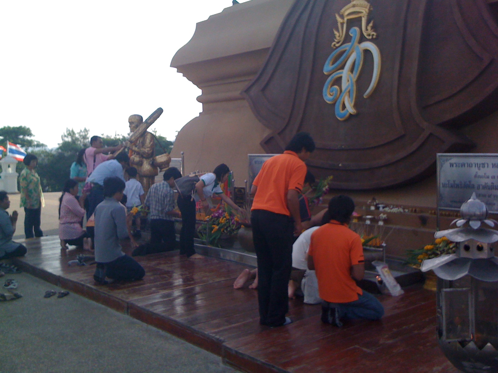 Vi måtte selvfølelig slepe oss opp de mange trappene opp til den store Buddaen og der fikk vi oss en overraskelse! Masse thaifolk som tilba både store Budda og mindre utgaver.