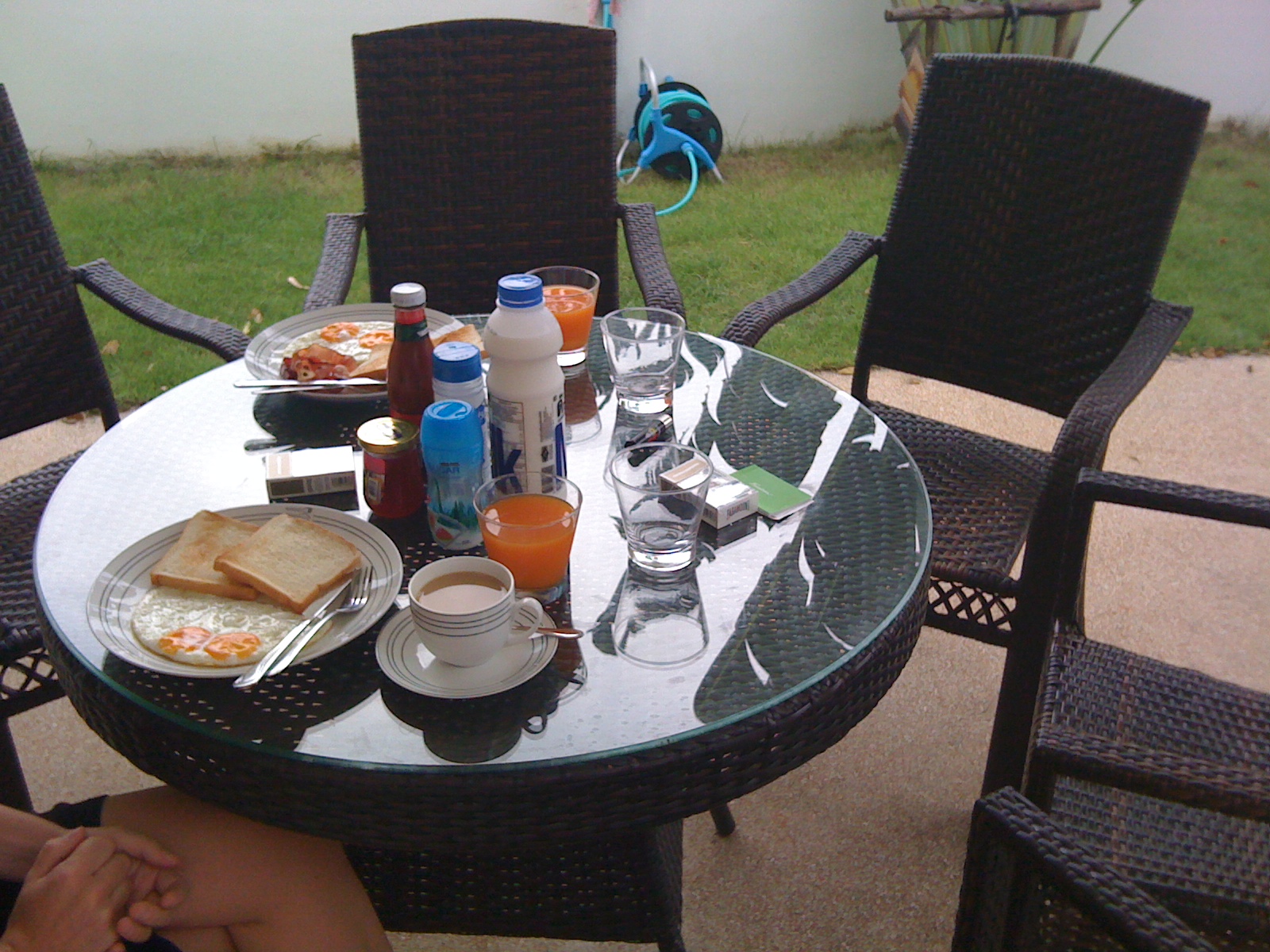 Men før vi rekker å sette tenna i omeletten kommer Erlend på besøk. For å gjøre en lang historie kort, Erlend er en vi har jobbet sammen med på internett. To døgn tidligere meldte han sin ankomst til Thailand og vi tilbød han selvsagt å kræsje i huset vårt til han hadde funnet seg et passende sted. Heldigvis var han både normal og oppgående!