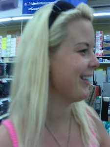 Heldigvis hadde Beer handlet inn forkost, men vi måtte ha litt annet også, så vi bestemte oss for å dra til Market Village, Hua Hins kjøpesenter sammen med Erlend for å handle litt. Det ble tuk-tuk opp og ned. Blant annet kjøpte vi et rosa kamera, og Solveig klarte ikke å dy seg for å teste i frykt for at det ikke skulle fungere. Det gjorde det, og her er resultatet