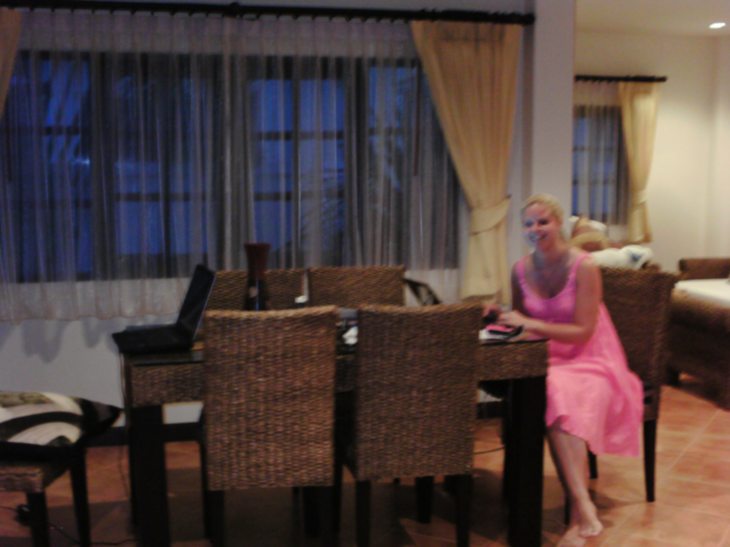 Etter at vi hadde kommet oss trygt i hus og pakket ut de få eiendelene vi hadde igjen kom hushjelpen på besøk sammen med venninnen sin for å hilse på oss nye beboere.