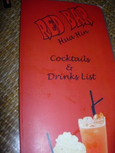 Alle synsinntrykkene fikk oss til å løpe inn på første og beste bar som selvfølgelige var ”Red Bar Hua Hin”. Her bestilte vi to drinker som kom i dameglass.