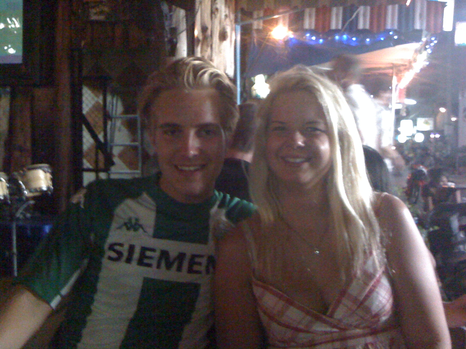 Vi bestemte oss for å gå litt lenger nedover gata og gikk inn på enda en bar der vi møtte på en svensk back pack-par som var helt på snurr!