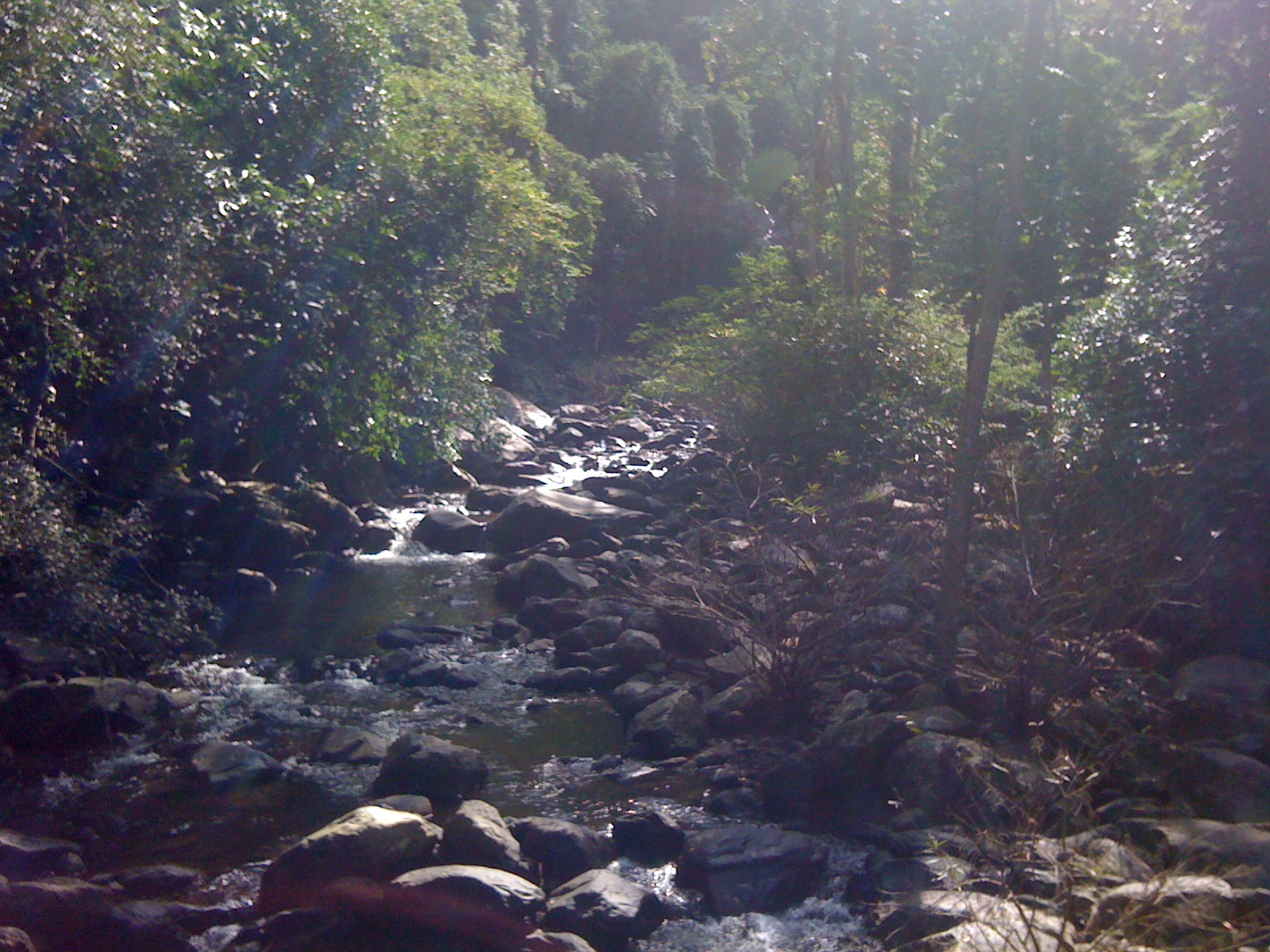 Etter å ha møtt på en øgle, mange rare kryp, utallige mygg og flere sommerfuglsvermer kom vi oss endelig til fossens øverste stryk.