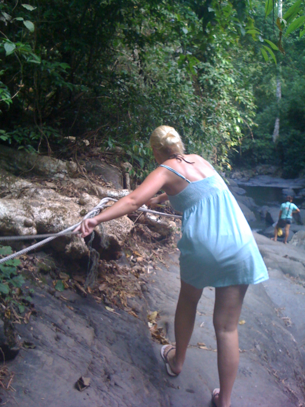 Turen opp til fossen skulle vise seg å bli litt av en opplevelse. Vi måtte følge en krunglete sti som slynget seg bratt gjennom skogen.