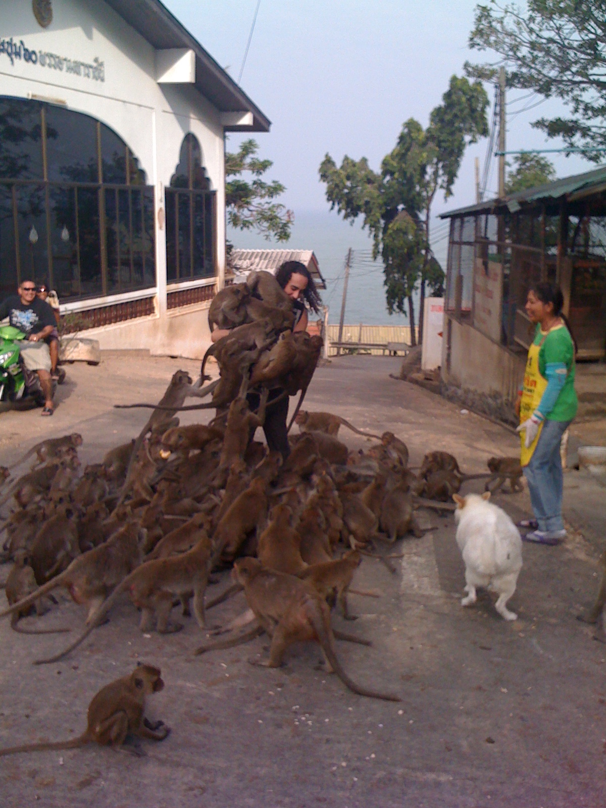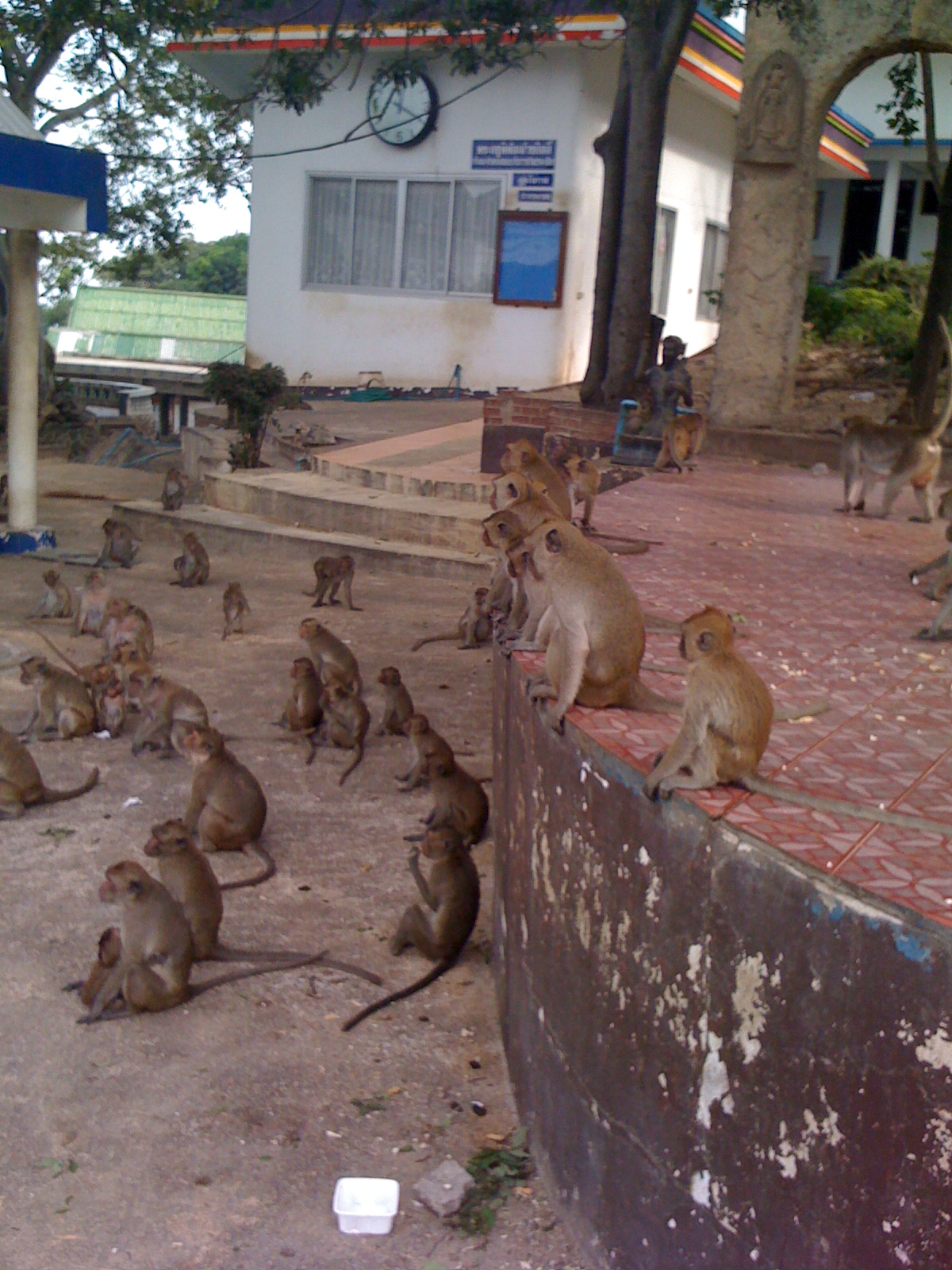 Men etter dagens opplevelse er vi fortsatt klare for å besøke ville aper på veien hjem. Ved en av Hua Hins strender ligger det et lite fjell der apene lever fritt.
