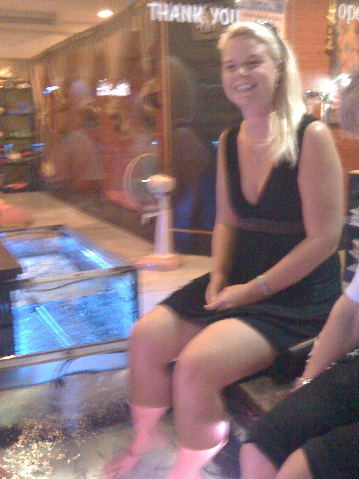 Det var en kilende opplevelse for å si det mildt, bare tenk deg tusen fisker som spiser deg mellom tærne. Vi hadde sammenhengende latterkrampe i samtlige 20 minutter vi satt der. Og gjett om vi ble en attraksjon ja. I Thailand er den beste reklamen sanntidsreklame, og vi ble plassert utenfor spaet, på gata, med beina i et akvarium. Det var sikkert 100 fremmede personer som ikke klarte å dy seg for å avbilde oss der vi satt. Så skjedde det, en full engelsk dame kom å kastet Ingvilds Iphone i akvariet. Den funka ikke etter det for å si det sånn.