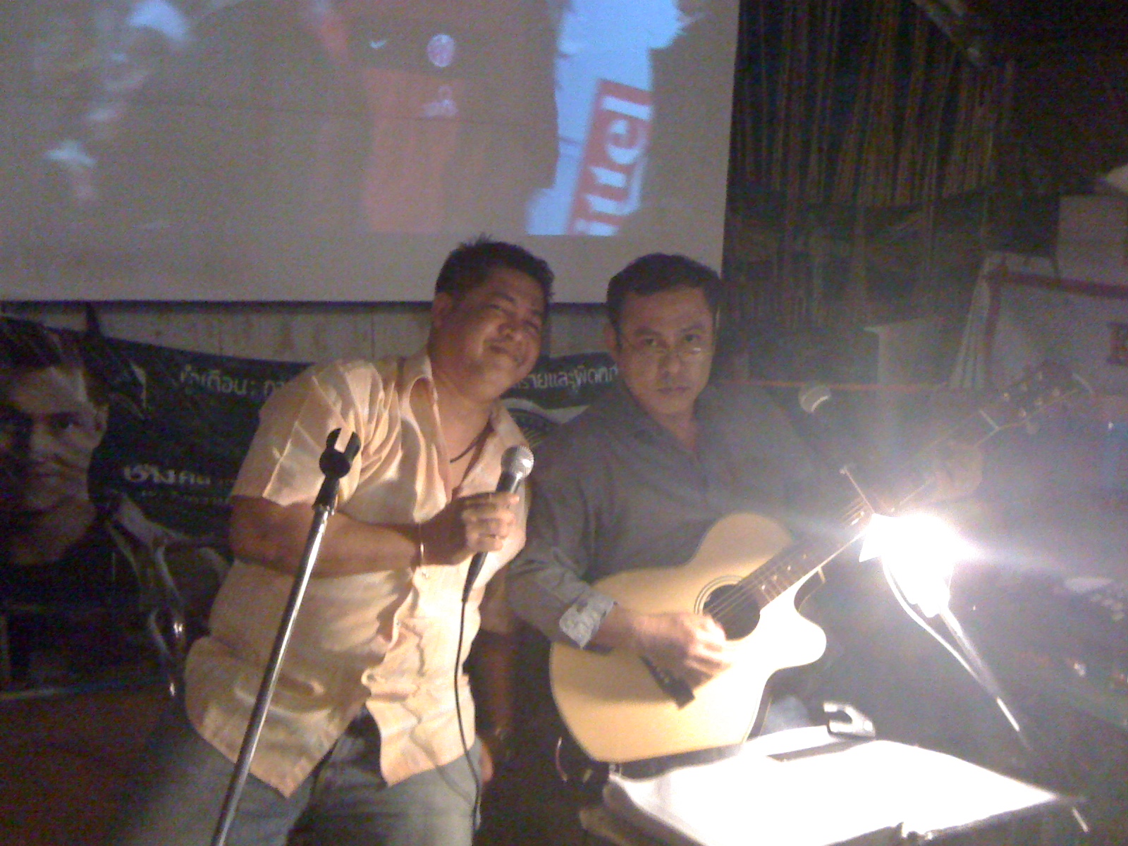 På tide med middag. Huseieren vår hadde anbefalt oss å stikke innom den lokale restauranten nettopp denne dagen fordi en forfyllet cowboy skulle underholde med levende thaimusikk.
