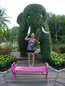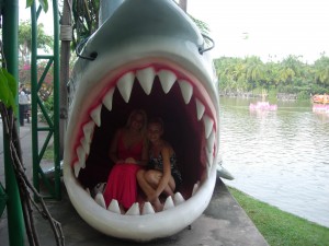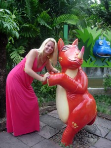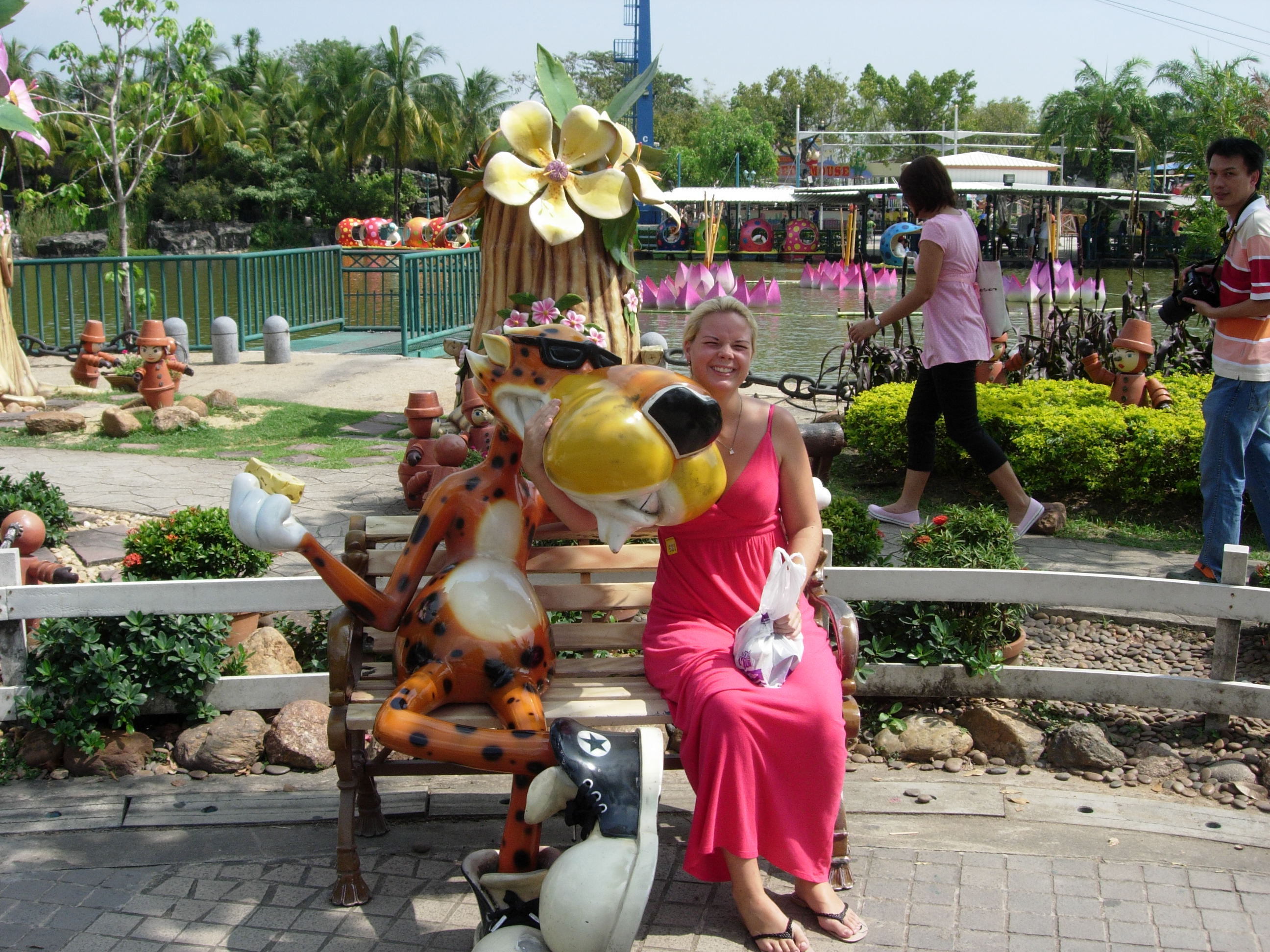 Vi fant fort ut at siste tilskudd til parkens attraksjoner var oss! Folk stirret på oss som om vi skulle vært aliens, og vi måtte stille opp på utallige bilder sammen med lokalbefolkningen, på link linje med alle de andre festlige skulpturene parken hadde å by på …
